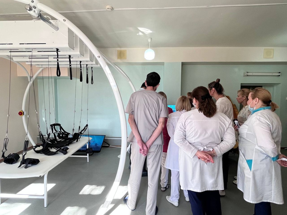 Специалисты провели обучение для врачей, рассказали, как правильно устанавливать пациента на комплекс, какие режимы можно использовать при различных ситуациях, как осуществляется оценка функциональных возможностей пациента и контроль за динамикой реабилитационного процесса.